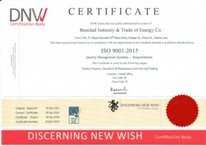ISO 9001:2015 Quality Management Systems by the coverage ranges of Turnkey Projects, Operations & Maintenance Activities and Trading.